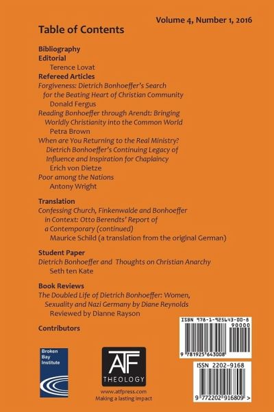 The Bonhoeffer Legacy: Australasian Journal of Bonhoeffer Studies is a fully refereed academic journal aimed principally at providing an outlet for an ever expanding Bonhoeffer scholarship in Australia, New Zealand and the South Pacific region, as well as