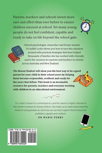 Parents, teachers and schools invest more care and effort than ever before to ensure children succeed at school. Yet many young people do not feel confident, capable and ready to take on life beyond the school gate. Clinical psychologist, researcher and former teacher Dr Judith Locke shows you how to turn this situation around with practical strategies that have helped thousands of families she has worked with clinically and in her sessions for parents and teachers in schools across Australia and New Zealand. The Bonsai Student will show you the best way to be a good parent for your child in their school years by helping them become responsible, resilient and ready for the years that follow. This book is an invaluable resource for parents, teachers and everyone working with children in an educational environment. 'Dr Locke's research is contemporary, and her advice is highly relevant in the modern context of raising children. She helps us to understand what the needs of young people are and how we can best support them to become confident, capable and resilient.' DR MARIE PERRY About the Author Dr Judith Locke is a registered clinical psychologist, former teacher, school counsellor and workplace trainer. She is the director of Confident and Capable®, a company specialising in psychological training solutions for parents, children, teachers, and others in schools, childcare centres, government and community organisations, and private companies. Judith also provides clinical assistance to families and individuals in her private practice in Toowong, Queensland. Judith's research at the Queensland University of Technology investigated modern parenting, family wellbeing, and how children and parents interact with academic environments. Her psychological commentary, including a weekly parenting column for The Sunday Mail, features regularly in the media. Judith is a member of the Australian Psychological Society (APS) and the APS College of Clinical Psychologists. She became an ambassador for Life Education Queensland in 2020. Judith's first bestselling book, The Bonsai Child, discusses problems with current well-meant parenting practices and shows parents practical ways to turn their situation around. This book, The Bonsai Student, focuses on children's school experience and gives parents useful and realistic strategies to ensure their children develop confidence, capability and independence in their studies to give them the best chance of future success and satisfaction in their work and personal lives.