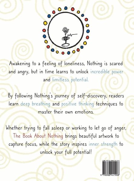 Awakening to a feeling of loneliness, Nothing is scared and angry, but in time learns to unlock incredible power and limitless potential. By following Nothing's journey of self-discovery, readers learn deep breathing and positive thinking techniques to master their own emotions. Whether trying to fall asleep or working to let go of anger, The Book About Nothing brings beautiful artwork to capture focus, while the story inspires inner strength to unlock our full potential.