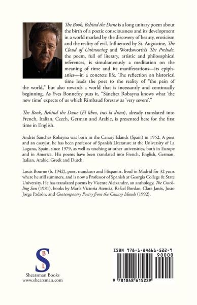 The Book, Behind the Dune is a long unitary poem about the birth of a poetic consciousness and its development in a world marked by the discovery of beauty, eroticism and the reality of evil. Influenced by St. Augustine, The Cloud of Unknowing and Wordsworth’s The Prelude, the poem, full of literary, artistic and philosophical references, is simultaneously a meditation on the meaning of time and its manifestations—its epiph-anies—in a concrete life. The reflection on historical time leads the poet to the reality of "the pain of the world," but also towards a world that is incessantly and continually beginning. As Yves Bonnefoy puts it, "Sánchez Robayna knows what ‘the new time’ expects of us which Rimbaud foresaw as ‘very severe’." The Book, Behind the Dune (El libro, tras la duna), already translated into French, Italian, Czech, German and Arabic, is presented here for the first time in English.