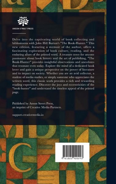 Delve into the captivating world of book collecting and bibliomania with John Hill Burton's "The Book-Hunter." This new edition, featuring a memoir of the author, offers a fascinating exploration of book culture, reading, and the enduring allure of the printed word. A treasure trove for anyone passionate about book history and the art of publishing, "The Book-Hunter" provides insightful observations and anecdotes that resonate even today. Explore the mind of a dedicated book lover and gain a unique perspective on the power of literature and its impact on society. Whether you are an avid collector, a student of media studies, or simply someone who appreciates the written word, this classic work provides a rich and rewarding reading experience. Discover the joys and eccentricities of the "book-hunter" and understand the timeless appeal of the printed page. This work has been selected by scholars as being culturally important, and is part of the knowledge base of civilization as we know it. This work is in the public domain in the United States of America, and possibly other nations. Within the United States, you may freely copy and distribute this work, as no entity (individual or corporate) has a copyright on the body of the work. Scholars believe, and we concur, that this work is important enough to be preserved, reproduced, and made generally available to the public. We appreciate your support of the preservation process, and thank you for being an important part of keeping this knowledge alive and relevant.