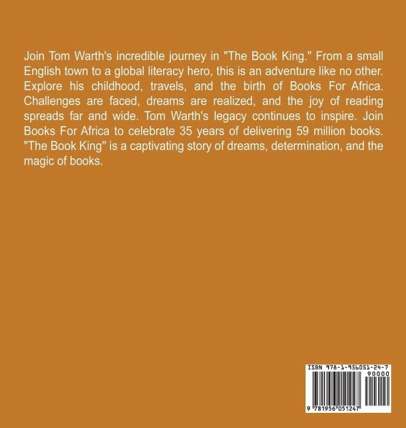 Join Tom Warth's incredible journey in "The Book King". From a small English town to a global literacy hero, this is an adventure like no other. Explore his childhood, travels and the birth of Books for Africa. Challenges are faced, dreams are realized, and the joy of reading spreads far and wide. Tom Warth's legacy continues to inspire. Join Books for Africa to celebrate 35 years of delivering 59 million books. "The Book King" is a captivating story of dreams, determination, and the magic of books.