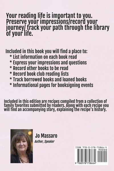 Your reading life is important to you. Preserve your impressions/record your journey/track your path through the library of your life. Included in this book you will find a place to: · List information on each book read · Express your impressions and questions · Record other books to be read · Record book club reading lists · Track borrowed books and loaned books · Informational pages for book signing events Included in this edition are recipes compiled from a collection of family favorites submitted by readers. Along with each recipe you will find an accompanying story, explaining the recipe's history.