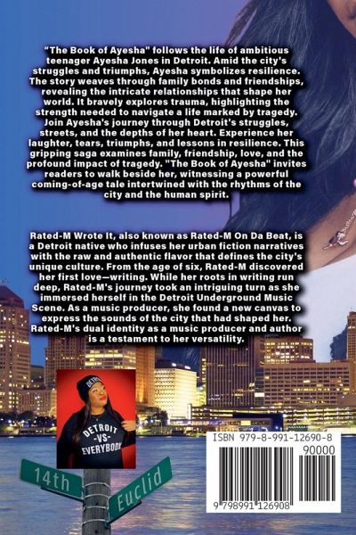 "The Book of Ayesha" follows the life of an ambitious young lady named Ayesha Jones in Detroit. Amid the city's struggles and triumphs, Ayesha symbolizes resilience. The story weaves through family bonds and friendships, revealing the intricate relationships that shape her world. It bravely explores trauma, highlighting the strength needed to navigate a life marked by tragedy. Join Ayesha's journey through Detroit's struggles, streets, and the depths of her heart. Experience her laughter, tears, triumphs, and lessons in resilience. This gripping saga examines family, friendship, love, and the profound impact of tragedy. "The Book of Ayesha" invites readers to walk beside her, witnessing a powerful coming-of-age tale intertwined with the rhythms of the city and the human spirit.¿ Ayesha's story begins with a portrayal of her family and best friend, highlighting the warmth and support they provide. However, as she navigates the complexities of growing up in Detroit, she encounters numerous challenges that test her strength and resolve. The narrative bravely explores trauma, showcasing the courage required to navigate a life marked by adversity. Tragedy becomes a turning point that forces her to confront the harsh realities of her environment. This devastating event shakes her to the core, but it also ignites a determination to rise above her circumstances. Ayesha faces multiple tribulations, but despite these setbacks, she remains focused on her dreams of a better future. Her academic achievements become beacons of hope, showing that resilience can thrive even in the most challenging environments. Ayesha's friendships are another crucial element of her story. She shares a deep bond with her best friend, Kierra, who stands by her side through thick and thin. Together, they navigate the ups and downs of teenage life, offering each other unwavering support. This powerful coming-of-age tale celebrates the strength required to overcome adversity and the unbreakable bonds that sustain us through life's challenges. Ayesha's story is a testament to the power of hope, determination, and the unwavering belief in a brighter future. Her journey through Detroit's streets and the depths of her heart reminds us that the human spirit can prevail even in the face of tragedy.
