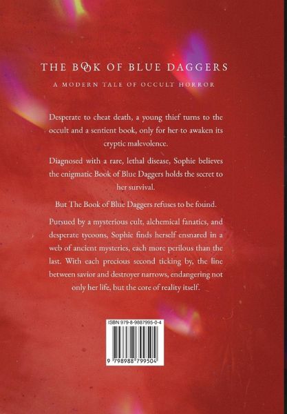 The Book of Blue DaggersA Modern Tale of Occult Horror Desperate to cheat death, a young thief turns to the occult and a sentient book, only for her to awaken its cryptic malevolence. Diagnosed with a rare, lethal disease, Sophie believes the enigmatic Book of Blue Daggers holds the secret to her survival. But The Book of Blue Daggers refuses to be found. Pursued by a mysterious cult, alchemical fanatics, and desperate tycoons, Sophie finds herself ensnared in a web of ancient mysteries, each more perilous than the last. With each precious second ticking by, the line between savior and destroyer narrows, endangering not only her life, but the core of reality itself.