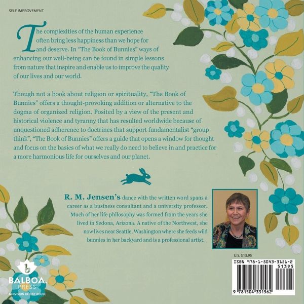 The complexities of the human experience often bring less happiness than we hope for and deserve. In "The Book of Bunnies" ways of enhancing our well-being can be found in simple lessons from nature that inspire and enable us to improve the quality of our lives and our world. Though not a book about religion or spirituality, "The Book of Bunnies" offers a thought-provoking addition or alternative to the dogma of organized religion. Posited by a view of the present and historical violence and tyranny that has resulted worldwide because of unquestioned adherence to doctrines that support fundamentalist "group think", "The Book of Bunnies" offers a guide that opens a window for thought and focus on the basics of what we really do need to believe in and practice for a more harmonious life for ourselves and our planet.