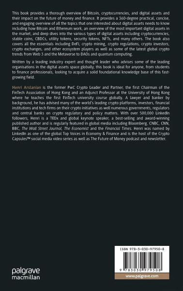 This book provides a thorough overview of Bitcoin, cryptocurrencies, and digital assets and their impact on the future of money and finance. It provides a 360-degree practical, concise, and engaging overview of all the topics that one interested about digital assets needs to know including how Bitcoin and Ethereum work, an overview of the most important digital assets in the market, and deep dives into the various types of digital assets including cryptocurrencies, stable coins, CBDCs, utility tokens, security tokens, NFTs, and many others. The book also covers all the essentials including DeFi, crypto mining, crypto regulations, crypto investors, crypto exchanges, and other ecosystem players as well as some of the latest global crypto trends from Web 3.0 and the Metaverse to DAOs and quantum computing.