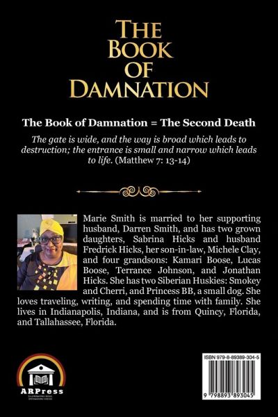 Marie Smith is married to her supporting husband, Darren Smith, and has two grown daughters, Sabrina Hicks and husband Fredrick Hicks, her son-in-law, Michele Clay, and four grandsons: Kamari Boose, Lucas Boose, Terrance Johnson, and Jonathan Hicks. She has two Siberian Huskies: Smokey and Cherri, and Princess BB, a small dog. She loves traveling, writing, and spending time with family. She lives in Indianapolis, Indiana, and is from Quincy, Florida, and Tallahassee, Florida.