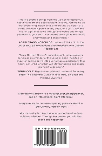 Mary's mystical heart-opening poetry will inspire you to have a personal connection with divine love. Some of her poem titles are "Awaken Our Slumbering Heart", "The Light of Forever" and "My Heart Is Open to New Possibilities." Mary's muse for her heart-opening poetry is Rumi, a 13th-century Persian poet.