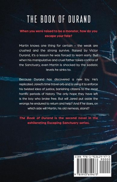 When you were raised to be a monster, how do you escape your fate? Martin knows one thing for certain - the weak are crushed and the strong survive. Raised by Victor Durand, it's a lesson he was forced to learn early. But when his manipulative and cruel father takes control of the Sanctuary, even Martin is shocked by the sadistic levels he sinks to. Because Durand has discovered a new toy. He's replicated Jared's time travel orb and is using it to enforce his twisted idea of justice, banishing citizens to the most horrific periods of history. The only hope they have left is the boy who broke free. But will Jared put aside the wrongs he endured to return and help? And if he does, on which side will Martin, his old nemesis, stand? The Book of Durand is the second in the exhilarating Escaping Sanctuary series.