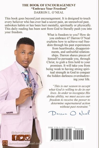 The Book of Encouragement: Embrace Your Freedom goes beyond just encouraging. It is designed to help one to find their true self within to push towards a greater future. After reading this book, one will be encouraged and motivated to overcome the darkness that's trying to overshadow their life.