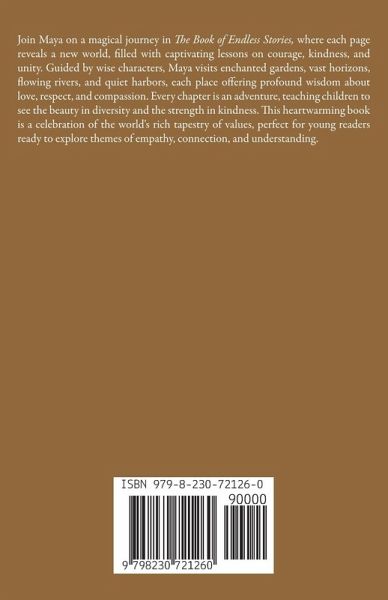 Join Maya on a magical journey in The Book of Endless Stories, where each page reveals a new world, filled with captivating lessons on courage, kindness, and unity. Guided by wise characters, Maya visits enchanted gardens, vast horizons, flowing rivers, and quiet harbors, each place offering profound wisdom about love, respect, and compassion. Every chapter is an adventure, teaching children to see the beauty in diversity and the strength in kindness. This heartwarming book is a celebration of the world's rich tapestry of values, perfect for young readers ready to explore themes of empathy, connection, and understanding.