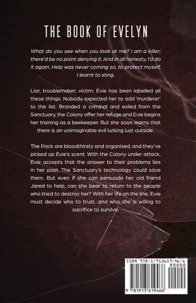 What do you see when you look at me? I am a killer; there'd be no point denying it. And in all honesty, I'd do it again. Help was never coming so, to protect myself, I learnt to sting. Liar, troublemaker, victim: Evie has been labelled all these things. Nobody expected her to add 'murderer' to the list. Branded a criminal and exiled from the Sanctuary, the Colony offer her refuge and Evie begins her training as a beekeeper. But she soon learns that there is an unimaginable evil lurking just outside. The Pack are bloodthirsty and organised, and they've picked up Evie's scent. With the Colony under attack, Evie accepts that the answer to their problems lies in her past. The Sanctuary's technology could save them. But even if she can persuade her old friend Jared to help, can she bear to return to the people who tried to destroy her? With her life on the line, Evie must decide who to trust...and who she is willing to sacrifice to survive. The Book of Evelyn is the third breathtaking instalment in the Escaping Sanctuary series.