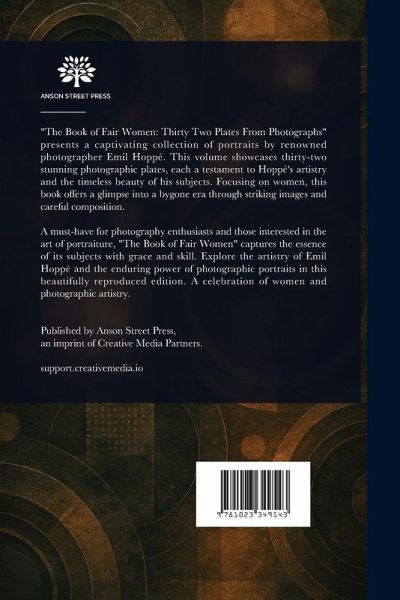 "The Book of Fair Women: Thirty Two Plates From Photographs" presents a captivating collection of portraits by renowned photographer Emil Hoppé. This volume showcases thirty-two stunning photographic plates, each a testament to Hoppé's artistry and the timeless beauty of his subjects. Focusing on women, this book offers a glimpse into a bygone era through striking images and careful composition. A must-have for photography enthusiasts and those interested in the art of portraiture, "The Book of Fair Women" captures the essence of its subjects with grace and skill. Explore the artistry of Emil Hoppé and the enduring power of photographic portraits in this beautifully reproduced edition. A celebration of women and photographic artistry. This work has been selected by scholars as being culturally important, and is part of the knowledge base of civilization as we know it. This work is in the public domain in the United States of America, and possibly other nations. Within the United States, you may freely copy and distribute this work, as no entity (individual or corporate) has a copyright on the body of the work. Scholars believe, and we concur, that this work is important enough to be preserved, reproduced, and made generally available to the public. We appreciate your support of the preservation process, and thank you for being an important part of keeping this knowledge alive and relevant.