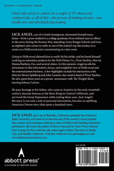 I had only acted on camera in a couple of TV shows and commercials, so all of this-the process of making movies-was totally new and absolutely fascinating. JACK ANGEL, son of a Greek immigrant, reinvented himself many times-from a poor student to a college graduate; from enlisted man to officer in the army during the Korean War, attending Army Ranger School; and from an eighteen-year career in radio as one of the nation's top disc jockeys to a career as a Hollywood actor concentrating on voice-overs. Going to Hollywood allowed him to really hit his stride, and he found himself working on animation projects for the Walt Disney Co., Pixar Studios, Marvel, Hanna/Barbera, Fox, and several others. In this memoir, Angel recalls his adventures in this informative, funny, and insightful view of Hollywood and the entertainment business. A few highlights include his interactions with director Steven Spielberg and John Lasseter, the creative head of Pixar Studios. He also spent three years as a promo announcer with The Tonight Show, starring Johnny Carson. He pays homage to his father, who came to America in the early twentieth century, became famous as the Bean King in Central California, and survived the Great Depression while raising three sons. Jack Angel's life story is not only a tale of personal reinvention, but also an uplift ing American Dream story that spans a hundred years.