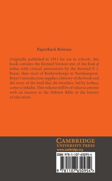 Originally published in 1911 for use in schools, this book contains the Revised Version text of the Book of Joshua with critical annotations by the Revered P. J. Boyer, then vicar of Rothersthorpe in Northampton. Boyer's introduction supplies a history of the book and the story of the land that the Israelites, led by Joshua, come to inhabit. This volume will be of value to anyone with an interest in the Hebrew Bible or the history of education.