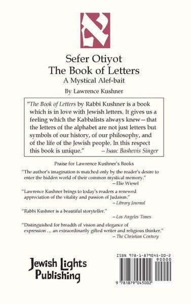 Folktales about and exploration of the mystical meanings of the twenty-two letters of the Hebrew alphabet. Weaving talmudic commentary, Hasidic folktales, and kabbalistic mysteries around the letters, each letter is illuminated and is presented in the author's original calligraphy. In these old prayerbook-like pages you will enter a world of sacred tradition and religious feeling. Weaves Talmudic commentary, Hasidic folktales and Kabbalistic mysteries around the Hebrew alphabet to reveal each letter's special personality and meaning.