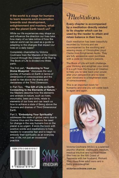 If the world is a stage for humans to learn lessons each incarnation towards soul development, enlightenment and mastery, what can the planet Earth teach us? While our life experiences may shape us and influence the direction our lives take, how many of us take notice of how the natural world can be used as a guide to adapting to the changes that impact our lives on a daily basis? Every chapter is accompanied by a meditation which directly relates to the chapter which can be used by the reader to attain and retain balance in their lives. Each meditation has been beautifully recorded by Victoria and are accompanied by the soothing and relaxing music of Christopher Lloyd Clarke from Enlightened Audio. They are fully accessible upon purchase with a code on Victoria's website. The Book of Life is divided into three parts. The first part, "Awakening to Your Divine Blueprint," discusses the soul journey of humans on Earth in terms of dimensions of consciousness and the quest to rise above the drama and denseness of the Third Dimension. In Part Two, "The Gift of Life on Earth: Connecting to the Elements of Nature," the Masters describe how the elements and animals in nature, such as rivers, mountains, bees and birds, relate to elements of our lives and can teach us how to achieve a state of Being above the illusions and dramas of Third Dimensional Earth. Part 3, "Embodying Your Spirituality" addresses the state of global panic due to Corona Virus and the reasons the need for change in the way humans live on the planet is so urgent. It ends the book with positive words and meditations to help readers to overcome fear and to begin to embody their spirituality as an everyday way of life, not just an occasional practice. The Book of Life will both challenge your thinking and enlighten your mind. It is a gift from the Source of Creation to help you to take back your power, alter your perspective and to raise your vibrations to a heightened state of consciousness. This is an important book for humanity and one you will come back to again and again.
