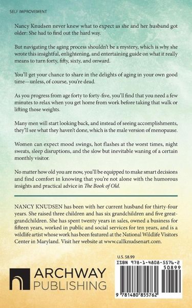 Nancy Knudsen never knew what to expect as she and her husband got older: She had to find out the hard way. But navigating the aging process shouldn't be a mystery, which is why she wrote this insightful, enlightening, and entertaining guide on what it really means to turn forty, fifty, sixty, and onward. You'll get your chance to share in the delights of aging in your own good time-unless, of course, you're dead. As you progress from age forty to forty-five, you'll find that you need a few minutes to relax when you get home from work before taking that walk or lifting those weights. Many men will start looking back, and instead of seeing accomplishments, they'll see what they haven't done, which is the male version of menopause. Women can expect mood swings, hot flashes at the worst times, night sweats, sleep disruptions, and the slow but inevitable waning of a certain monthly visitor. No matter how old you are now, you'll be equipped to make smart decisions and find comfort in knowing that you're not alone with the humorous insights and practical advice in The Book of Old.