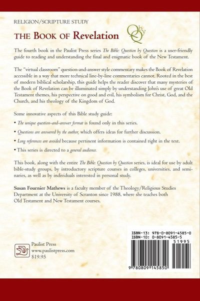 Here is a user friendly guide to reading and understanding the last and enigmatic book of the New Testament. It is designed for the interested non-specialist, like the educated lay person, student, or church professional, and is ideally suited for parish adult bible study groups and college level inquiry. Its Socratic method of question and answer makes it very desirable for parish study groups and classroom use alike. Non-biblical theologians and teachers of humanities will find it a valuable resource for making Revelation accessible. Preachers will find it helpful for identifying the main ideas of Revelation. This "virtual classroom" style commentary will help make the Book of Revelation accessible in a way that the more technical line-by-line commentary cannot. While being rooted in the best of modern biblical scholarship on the Book of Revelation, the interpretation is set out in a straightforward, simple way, emphasizing the themes and theology of the book. This is not a book written for scholars, but for the interested adult non-specialist. It seeks to steer a middle course between highly technical and too elementary commentaries. The background and literary characteristics essential to grasping the book's content and context are set out in non technical terms. The periodic reviews help the reader progress from one section to the next. This guide will help the reader discover that many mysteries of the Book of Revelation are illuminated by understanding John's use of great Old Testament themes, his perspective on good and evil, the symbolism employed in the book for Christ, God, and the Church, and his theology of the Kingdom of God. +