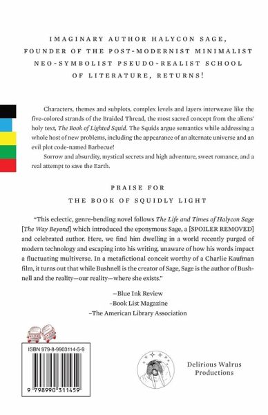 Halycon Sage is back! As the eccentric citizens of Dry Creek Gulch happily organize a peaceful, post-technological society, big sparkly blue Squidren are rapidly approaching Earth! These telepathic, time-traveling, dimension-hopping Squids have plans for us-as do the suddenly sentient Nanobots and a Shadowy Man who preys on human weakness: shifting dimensions, eccentric aliens, and batty earthlings. Love, hope, courage, and acceptance-but there is danger! The Book of Squidly Light is a space western and a post-apocalyptic story: Science Fiction, Literary Fiction, and Metafiction. It's also Book Two of The Sage Chronicles following The Way Beyond: The Life and Times of Halycon Sage, which introduces the world-famous yet compulsively anonymous founder of the Post-Modernist Minimalist Neo-Symbolist Pseudo-Realist School of Literature. In Book Two, we return to the desert town of Dry Creek Gulch and re-encounter old friends: confused genius Alexander Preisczech and his mysterious wife Jenny, former gangsters Ratbone and Wolf, Iraqi pilot Muhammad Abdurraheem Hussein and family, the intrepid Ruby Echevaria and many more, including Sage's TV-watching, motel-sleeping horse No-Name Stupid. We meet a few enemies of all sentient beings as well. The goal-again, and always-is to unite across cultural and intergalactic barriers to save the earth and the wider universe from the dangers that threaten them, even after the first supposed End of the World. The Book of Squidly Light takes everything deeper. It's written in layers and levels, and like the metaphysical system of the Squidren, it contains various threads: life in a post-apocalyptic desert town, multicultural people and cross-cultural or cross-species romances, the thoughts and behaviors of space aliens, suddenly sentient nanobots, rituals both holy and unholy, poetry written by cats and horses, and even a few Secrets of the Universe. It's also a critique of some life-denying attitudes that threaten us all.