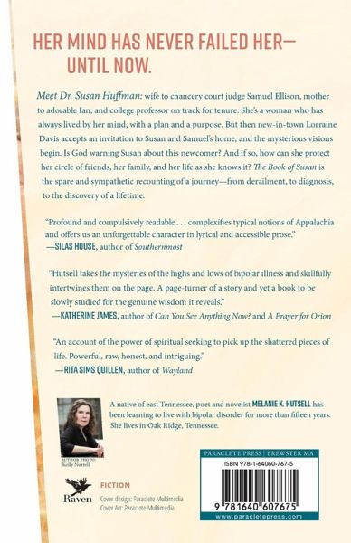 A native of east Tennessee, poet and novelist Melanie K. Hutsell has been learning to live with bipolar disorder for more than fifteen years. She holds a BA in English from the University of North Carolina at Chapel Hill, an MA in English from Indiana University at Bloomington, and an MBA from East Tennessee State University. She is the author of the novels, The Dead Shall Rise: A Tale of the Mountains, and The Book of Susan, which received the Award of Merit in the fiction category of the 2023 Christianity Today Book Awards. A lay member of the United Methodist Church, an avid reader, and music lover, she currently resides in Oak Ridge, Tennessee.