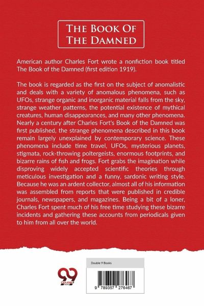 American author Charles Fort wrote a nonfiction book titled The Book of the Damned (first edition 1919). The book is regarded as the first on the subject of anomalistic and deals with a variety of anomalous phenomena, such as UFOs, strange organic and inorganic material falls from the sky, strange weather patterns, the potential existence of mythical creatures, human disappearances, and many other phenomena. Nearly a century after Charles Fort's Book of the Damned was first published, the strange phenomena described in this book remain largely unexplained by contemporary science. These phenomena include time travel, UFOs, mysterious planets, stigmata, rock-throwing poltergeists, enormous footprints, and bizarre rains of fish and frogs. Fort grabs the imagination while disproving widely accepted scientific theories through meticulous investigation and a funny, sardonic writing style. Because he was an ardent collector, almost all of his information was assembled from reports that were published in credible journals, newspapers, and magazines. Being a bit of a loner, Charles Fort spent much of his free time studying these bizarre incidents and gathering these accounts from periodicals given to him from all over the world.