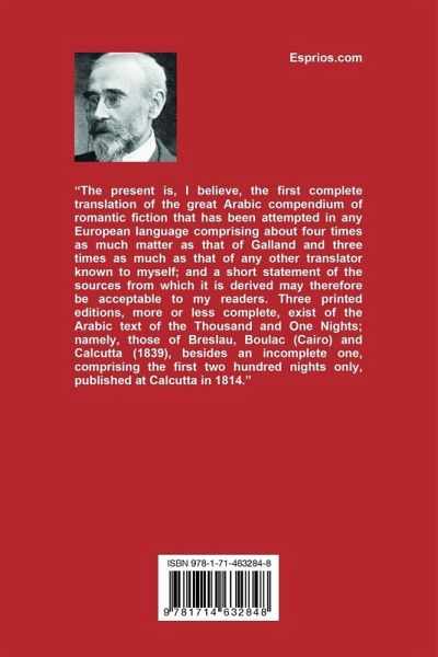 "The present is, I believe, the first complete translation of the great Arabic compendium of romantic fiction that has been attempted in any European language comprising about four times as much matter as that of Galland and three times as much as that of any other translator known to myself; and a short statement of the sources from which it is derived may therefore be acceptable to my readers. Three printed editions, more or less complete, exist of the Arabic text of the Thousand and One Nights; namely, those of Breslau, Boulac (Cairo) and Calcutta (1839), besides an incomplete one, comprising the first two hundred nights only, published at Calcutta in 1814."