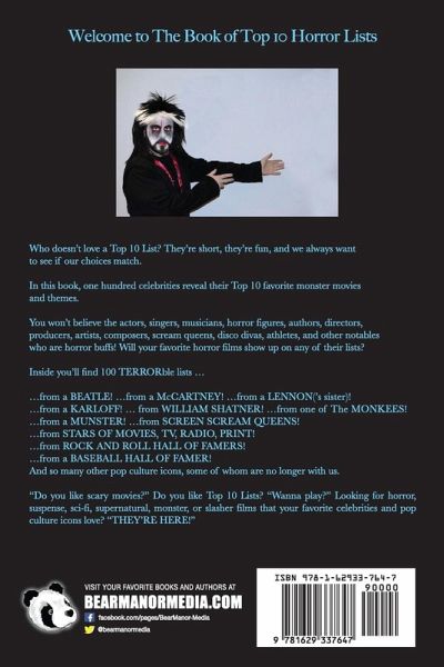 Who doesn't love a Top 10 List? They're short, they're fun, and we always want to see if our choices match. In this book, one hundred celebrities reveal their Top 10 favorite monster movies and themes. The author, Charles F. Rosenay!!! aka "Cryptmaster Chucky, is the originator and organizer of the annual Dracula Tours to Transylvania, and this is his first book. He comments, "You won't believe the actors, singers, musicians, horror figures, authors, film-makers, artists, composers, disco divas, sports figures, and others who are horror buffs!" Included are lists from a Beatle, from a McCartney, from a Lennon('s sister), from a Karloff, from Star Trek's William Shatner, from respected thespian Ed Asner, from one of The Monkees, from a Munster, from a Woodstock legend, from a Baseball Hall of Famer, from three Rock and Roll Hall of Famers, and from many famous names one would never know were "monster mavens." "Will your favorite horror films show up on any of their lists?" This book should be on the shelf of all pop-culture aficionados, horror lovers, Beatles and Monkees followers, classic movie admirers, top 10 lists enthusiasts, trivia buffs and lovers of fun facts and reviews.