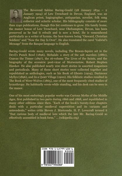 The Reverend Sabine Baring-Gould (28 January 1834 - 2 January 1924) of Lew Trenchard in Devon, England, was an Anglican priest, hagiographer, antiquarian, novelist, folk song collector and eclectic scholar. His bibliography consists of more than 1240 publications, though this list continues to grow. His family home, the manor house of Lew Trenchard, near Okehampton, Devon, has been preserved as he had it rebuilt and is now a hotel. He is remembered particularly as a writer of hymns, the best-known being "Onward, Christian Soldiers" and "Now the Day Is Over". He also translated the carol "Gabriel's Message" from the Basque language to English. Baring-Gould wrote many novels, including The Broom-Squire set in the Devil's Punch Bowl (1896), Mehalah: a story of the salt marshes (1880), Guavas the Tinner (1897), the 16-volume The Lives of the Saints, and the biography of the eccentric poet-vicar of Morwenstow, Robert Stephen Hawker. He also published nearly 200 short stories in assorted magazines and periodicals. Many of these short stories were collected together and republished as anthologies, such as his Book of Ghosts (1904), Dartmoor Idyllys (1896), and In a Quiet Village (1900). His folkloric studies resulted in The Book of Were-Wolves (1865), one of the most frequently cited studies of lycanthropy. He habitually wrote while standing, and his desk can be seen in the manor. One of his most enduringly popular works was Curious Myths of the Middle Ages, first published in two parts during 1866 and 1868, and republished in many other editions since then. "Each of the book's twenty-four chapters deals with a particular medieval superstition and its variants and antecedents," writes critic Steven J. Mariconda. H. P. Lovecraft termed it "that curious body of medieval lore which the late Mr. Baring-Gould so effectively assembled in book form." ... (wikipedia.org)
