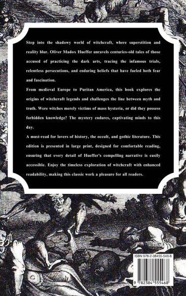 Step into the shadowy world of witchcraft, where superstition and reality blur. Oliver Madox Hueffer unravels centuries-old tales of those accused of practicing the dark arts, tracing the infamous trials, relentless persecutions, and enduring beliefs that have fueled both fear and fascination.From medieval Europe to Puritan America, this book explores the origins of witchcraft legends and challenges the line between myth and truth. Were witches merely victims of mass hysteria, or did they possess forbidden knowledge? The mystery endures, captivating minds to this day.A must-read for lovers of history, the occult, and gothic literature. This edition is presented in large print, designed for comfortable reading, ensuring that every detail of Hueffer's compelling narrative is easily accessible. Enjoy the timeless exploration of witchcraft with enhanced readability, making this classic work a pleasure for all readers.