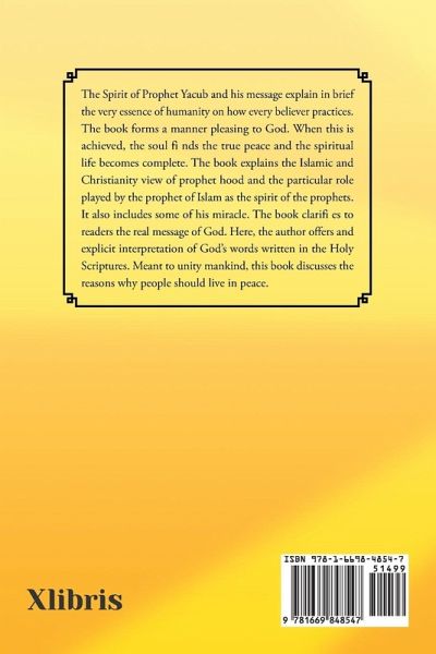 The Spirit of Prophet Yacub and his message explain in brief the very essence of humanity on how every believer practices. The book forms a manner pleasing to God. When this is achieved, the soul fi nds the true peace and the spiritual life becomes complete. The book explains the Islamic and Christianity view of prophet hood and the particular role played by the prophet of Islam as the spirit of the prophets. It also includes some of his miracle. The book clarifi es to readers the real message of God. Here, the author offers and explicit interpretation of God's words written in the Holy Scriptures. Meant to unity mankind, this book discusses the reasons why people should live in peace.