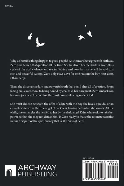 We can find ourselves asking, "Why do horrible things happen to good people?". Within Zero's story that very question begins to unfold. Zero has lived her life in sexual extortion and as she nears her eighteenth birthday, learns she will be sold to the rich and powerful tycoon, Linnard Yohana. Zero, choosing to stay alive for Ethan Benji, the boy next door, discovers a dark and powerful truth that will alter all of creation. From facing physically violent bullies at school to being bound by chains in her basement, Zero embarks on her own journey of becoming the most powerful being under God. She must choose between the offer of a life with the boy she loves from the Dark Angel Kain, Suicide, or an eternal existence as the true angel of darkness leaving behind all she knows. There will be wolves, wendigos, dragons and ultimate sacrifice in this first part of the epic journey that is The Book of Zero.