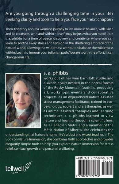 Are you going through a challenging time in your life? Seeking clarity and tools to help you face your next chapter? Then, this story about a woman's journey to live more in balance, with Earth and its creatures, with and within herself, may be just what you need! Join s. a. phibbs for a time of peace, discovery and creativity, where you can learn to soothe away stress and tension in the sheltering embrace of the natural world, allowing the wilderness without to balance the wilderness within. Learn to honour your tellurian path. You are worth the effort, it can change your life.