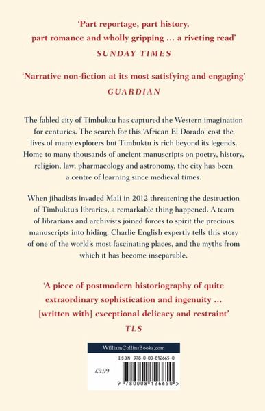 When jihadists invaded Mali in 2012 threatening destruction to Timbuktu's libraries, a remarkable thing happened. A team of librarians and archivists joined forces to spirit the precious manuscripts into hiding. Based on new research and first-hand reporting, Charlie English expertly tells this story set in one of the world's most fascinating places, and the myths from which it has become inseparable.
