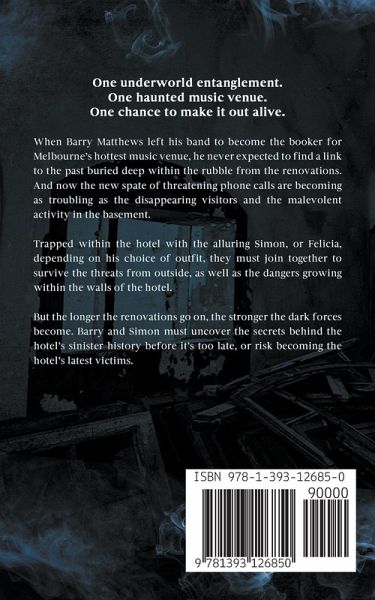 One underworld entanglement. One haunted music venue. One chance to make it out alive. When Barry Matthews left his band to become the booker for Melbourne's hottest music venue, he never expected to find a link to the past buried deep within the rubble from the renovations. And now the new spate of threatening phone calls are becoming as troubling as the disappearing visitors and the malevolent activity in the basement. Trapped within the hotel with the alluring Simon, or Felicia, depending on his choice of outfit, they must join together to survive the threats from outside, as well as the dangers growing within the walls of the hotel. But the longer the renovations go on, the stronger the dark forces become. Barry and Simon must uncover the secrets behind the hotel's sinister history before it's too late, or risk becoming the hotel's latest victims.