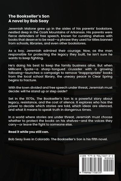 The Bookseller's Son is a story of legacy, the cost of silence, and the price of speaking up. In 1970s rural Arkansas, Jeremiah Malone grows up in his parents' bookstore, a nationally recognized refuge for banned voices and unwelcome ideas. When his parents retire and a rising movement for censorship sweeps through town, Jeremiah must decide whether to inherit their fight-or forge a different path. As tensions rise and threats close in, he is forced to confront what it truly means to resist-and what it will cost him if he does. Set against the backdrop of a changing America, The Bookseller's Son explores who gets to decide which voices are heard-and what happens when a community refuses to let them be silenced.