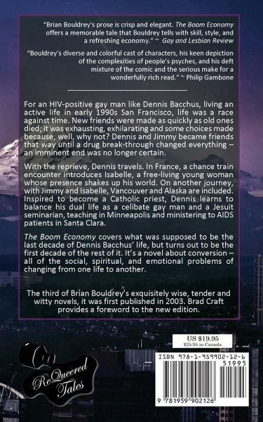 For an HIV-positive gay man like Dennis Bacchus, living an active life in early 1990s San Francisco, life was a race against time. New friends were made as quickly as old ones died; it was exhausting, exhilarating and some choices made because, well, why not? Dennis and Jimmy became friends that way until a drug break-through changed everything - an imminent end was no longer certain. With the reprieve, Dennis travels. In France, a chance train encounter introduces Isabelle, a free-living young woman whose presence shakes up his world. On another journey, with Jimmy and Isabelle, Vancouver and Alaska are included. Inspired to become a Catholic priest, Dennis learns to balance his dual life as a celibate gay man and a Jesuit seminarian, teaching in Minneapolis and ministering to AIDS patients in Santa Clara. The Boom Economy covers what was supposed to be the last decade of Dennis Bacchus' life, but turns out to be the first decade of the rest of it. It's a novel about conversion - all of the social, spiritual, and emotional problems of changing from one life to another. The third of Brian Bouldrey's exquisitely wise, tender and witty novels, it was first published in 2003. Brad Craft provides a foreword to the new edition. ¿"Bouldrey's diverse and colorful cast of characters, his keen depiction of the complexities of people's psyches, and his deft mixture of the comic and the serious make for a wonderfully rich read. His theme - that love is always risky, no matter what your situation - is beautifully explored in this smart, sensual, and savvy novel." - Phillip Gambone, Out Magazine "Bouldrey's prose is crisp and elegant. He has a gift for using small details and seemingly unlikely events to illuminate his story-line and his characterizations. He also employs poetry, namely the verses that Dennis scribbles in his notebook, to provide a look into the nascent priest's restless psyche. The Boom Economy offers a memorable tale that Bouldrey tells with skill, style, and a refreshing economy." - Jim Nawrocki, Gay & Lesbian Review "I have long admired the wit, compassion and utter poise of Brian Bouldrey's work, his way of finding the hilarity in desperately sad situations, the sharpness and intelligence of his observations of the little details that make up our lives. The Boom Economy is the story of a spiritual quest; and a comedy of manners about living with HIV; and an exploration of love and friendship and loneliness at the end of the century. The amazing thing is that it's so funny, so tender, and so wise all at the same time." - Dan Chaon, Among the Missing