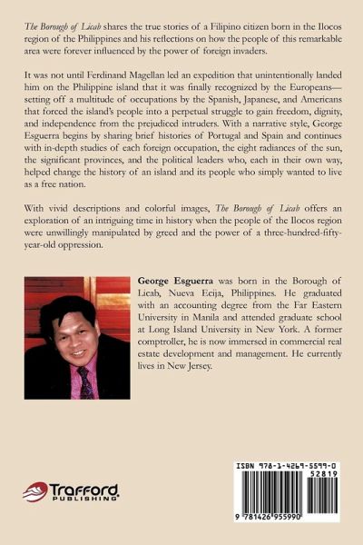 The Borough of Licab shares the true stories of a Filipino citizen born in the Ilocos region of the Philippines and his reflections on how the people of this remarkable area were forever influenced by the power of foreign invaders. It was not until Ferdinand Magellan led an expedition that unintentionally landed him on the Philippine island that it was finally recognized by the Europeans-setting off a multitude of occupations by the Spanish, Japanese, and Americans that forced the island's people into a perpetual struggle to gain freedom, dignity, and independence from the prejudiced intruders. With a narrative style, George Esguerra begins by sharing brief histories of Portugal and Spain and continues with in-depth studies of each foreign occupation, the eight radiances of the sun, the significant provinces, and the political leaders who, each in their own way, helped change the history of an island and its people who simply wanted to live as a free nation. With vivid descriptions and colorful images, The Borough of Licabi offers an exploration of an intriguing time in history when the people of the Ilocos region were unwillingly manipulated by greed and the power of a three-hundred-fifty-year-old oppression.