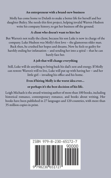 An entrepreneur with a brand-new business Molly has come home to Duluth to make a better life for herself and her daughter Bailey. She needs this first project, helping invalid Warren Hudson write his company history, to get her business off the ground. A client who doesn't want to hire her But Warren's not really the client, because his son Luke is now in charge of the company. Luke Hudson was Molly's first love - the glamorous older man. Back then, he crushed her hopes and dreams. Now he feels so guilty for harshly ending her infatuation - and sending her into a spiral - that he can barely face her. A job that will change everything Still, Luke will do anything to bring back his dad's zest and energy. if Molly can restore Warren's will to live, Luke will put up with having her - and her little girl - invading his office and his home. Even if hiring Molly is the worst idea ever... or perhaps it's the best decision of his life. Classic romance from international bestselling author Leigh Michaels Leigh Michaels is the award-winning author of more than 100 books, including historical romance, contemporary romance, and books about writing. Her books have been published in 27 languages and 120 countries, with more than 35 million copies in print.