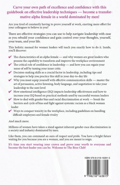 Carve your own path of excellence and confidence with this guidebook on effective leadership techniques - become a transformative alpha female in a world dominated by men! Are you tired of constantly having to prove yourself at work, exerting more effort for your colleagues to believe in you? Do you feel exhausted just by thinking about the toxicity and negativity in the workplace, and the subtle yet consistent targeting at work just because you are a woman? These negative feelings can take a toll and may even make you doubt yourself. What if you're not really qualified for the role? What if you don't really deserve the position? What if you fail to meet all expectations? Your confidence is shattered, making you feel like you want to give up and raise your white flag to put a stop to it. But deep inside you, you know this is not what should be done. As a strong and independent woman, you know you can do something about it, even if it means fighting against a system of beliefs and gender bias passed down from one generation to another. And guess what? There is hope-and, certainly, there is help, too. There are effective strategies you can use to help navigate leadership with ease as you rebuild your confidence and gain control over your thoughts, yourself, your team, and your life. This holistic manual for women leaders will teach you exactly how to do it. Inside, you'll discover: * The characteristics of an alpha female - and why women are great leaders who possess the capability to transform and improve the workplace environment * The critical role of confidence in leadership - and how you can regain your sense of self by taming your inner critic * Decision-making skills as a crucial factor in leadership, including tips and strategies to help you practice this skill in your day-to-day life * Why you must equip yourself with effective communication skills - master the art of persuasion, active listening, body language, and negotiation to take your leadership to the next level * How emotional intelligence (EQ) impacts leadership effectiveness and how to increase your EQ based on practical methods used by successful women leaders * How to deal with gender bias and racial discrimination at work - break the barriers and cycle of bias and fight against systemic racism as a black woman leader * Ways to conquer toxicity in the workplace, including guidelines on handling difficult employees and female rivalry And much more. Millions of women have taken a stand against inherent gender-race discrimination in a society and industry dominated by men. We've seen influential female bosses reshaping workplace productivity and performance, albeit slow and gradual. Like them, you can command an aura of respect and pride. You have a bright future waiting for you because you are a woman, and you are meant to reign. It's time you start wearing your crown.