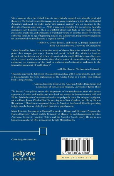 "At a moment when the United States is more globally engaged yet culturally provincial than ever, The Boston Cosmopolitans comes as a welcome reminder of a time when influential Americans embraced the wider world with genuine curiosity and an openness to the diversity of human experience. Mark Rennella takes us on a Cook's tour of the cosmopolitan culture fashioned by Henry and William James, William Dean Howells, Henry Hobson Richardson, Isabella Stewart Gardner, and their fellow travelers, journeying with them to foreign lands in quest of wider horizons and artistic inspiration, and returning home to assay their remarkable achievements in literature, architecture, and art. With a generous sympathy for his subjects, Rennella challenges easy dismissals of them as outdated elitists and finds in their high idealism, passion for excellence, and appreciation of cultural variety an essential model for our own embattled times. In an age of tightening borders and culture wars, this persuasive argument for international cosmopolitanism is urgently needed." - Robert A. Gross, James L. and Shirley A. Draper Professor of Early American History, University of Connecticut"Mark Rennella's book is an innovative study of diverse Bostonian cultural actors that places their complex journeys to literary and artistic individuality within the intricate dynamics of the Atlantic world. It thus takes seriously the manifold links between literature and art, travel, and the emboldening, often elusive, dream of cosmopolitanism, while also enhancing our awareness of the need to study - always! - American endeavors in the interactive framework of world history." - Hollis Clayson, Northwestern University"In this deeply probing book Mark Rennella clarifies and subtly distinguishes among concepts that historians and literary critics for over a century have used far too carelessly: exiles, expatriates, cosmopolitans and, more recently, transnationals. Hardly a merely lexical question, identifying the right definition helps, on the one hand, to put into the appropriate political, social, and cultural perspective the context from which the 'Boston Cosmopolitan' artists and intellectuals emerged, and, on the other, to understand what, in our own multicultural era, is happening around us. Beyond definitions and concepts, Rennella conveys the full sweep of cosmopolitan culture with a focus upon the east coast of Massachusetts, but with implications for the United States as a whole. This brilliant book is long overdue." - Cristina Giorcelli, Chair of the American Studies Department and Coordinator of the Doctoral Program, University of Rome Three