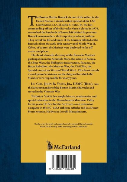 The Boston Marine Barracks is one of the oldest in the United States: it stands within eyeshot of the USS Constitution. Lt. Col. John R. Yates, Jr., the last commanding officer of the Barracks when it closed in 1974, researched the hundreds of letters left behind by previous Barracks commanders, their superiors and many others. They reveal the life and times of the Marines billeted at the Barracks from the early 19th century until World War II. Often, of course, the Marines were deployed to far-off events and places. This book also tells the story of the Barracks Marines' participation in the Seminole Wars, the action in Samoa, the Boer Wars, the Philippine Insurrection, Panama, the Boxer Rebellion, the Mexican War, the Civil War, the Spanish American War and World War I. This book reveals a naval prison's existence on the shipyard for which the Marines were responsible for many years.