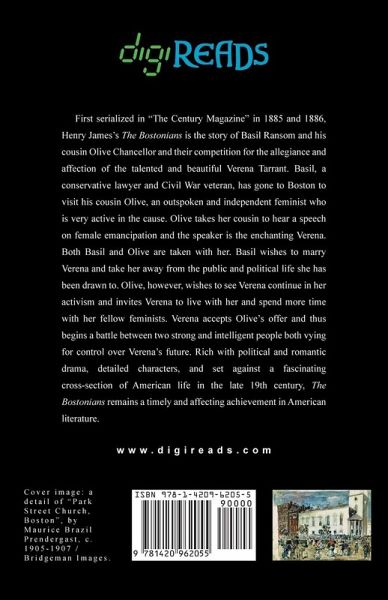 First serialized in "The Century Magazine" in 1885 and 1886, Henry James's "The Bostonians" is the story of Basil Ransom and his cousin Olive Chancellor and their competition for the allegiance and affection of the talented and beautiful Verena Tarrant. Basil, a conservative lawyer and Civil War veteran, has gone to Boston to visit his cousin Olive, an outspoken and independent feminist who is very active in the cause. Olive takes her cousin to hear a speech on female emancipation and the speaker is the enchanting Verena. Both Basil and Olive are taken with her. Basil wishes to marry Verena and take her away from the public and political life she has been drawn to. Olive, however, wishes to see Verena continue in her activism and invites Verena to live with her and spend more time with her fellow feminists. Verena accepts Olive's offer and thus begins a battle between two strong and intelligent people both vying for control over Verena's future. Rich with political and romantic drama, detailed characters, and set against a fascinating cross-section of American life in the late 19th century, "The Bostonians" remains a timely and affecting achievement in American literature. This edition is printed on premium acid-free paper.