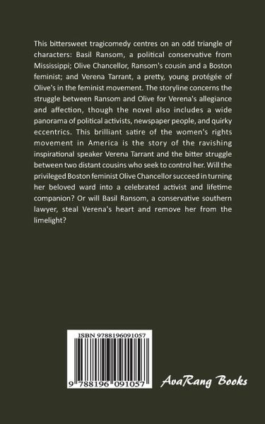 This bittersweet tragicomedy centres on an odd triangle of characters: Basil Ransom, a political conservative from Mississippi; Olive Chancellor, Ransom's cousin and a Boston feminist; and Verena Tarrant, a pretty, young protégée of Olive's in the feminist movement. The storyline concerns the struggle between Ransom and Olive for Verena's allegiance and affection, though the novel also includes a wide panorama of political activists, newspaper people, and quirky eccentrics. This brilliant satire of the women's rights movement in America is the story of the ravishing inspirational speaker Verena Tarrant and the bitter struggle between two distant cousins who seek to control her. Will the privileged Boston feminist Olive Chancellor succeed in turning her beloved ward into a celebrated activist and lifetime companion? Or will Basil Ransom, a conservative southern lawyer, steal Verena's heart and remove her from the limelight?