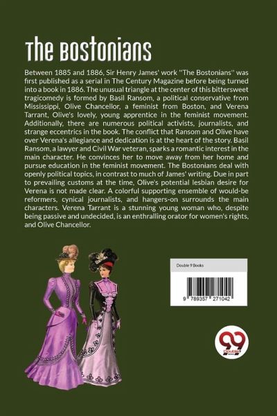 Between 1885 and 1886, Sir Henry James' work ''The Bostonians'' was first published as a serial in The Century Magazine before being turned into a book in 1886. The unusual triangle at the center of this bittersweet tragicomedy is formed by Basil Ransom, a political conservative from Mississippi, Olive Chancellor, a feminist from Boston, and Verena Tarrant, Olive's lovely, young apprentice in the feminist movement. Additionally, there are numerous political activists, journalists, and strange eccentrics in the book. The conflict that Ransom and Olive have over Verena's allegiance and dedication is at the heart of the story. Basil Ransom, a lawyer and Civil War veteran, sparks a romantic interest in the main character. He convinces her to move away from her home and pursue education in the feminist movement. The Bostonians deal with openly political topics, in contrast to much of James' writing. Due in part to prevailing customs at the time, Olive's potential lesbian desire for Verena is not made clear. A colorful supporting ensemble of would-be reformers, cynical journalists, and hangers-on surrounds the main characters. Verena Tarrant is a stunning young woman who, despite being passive and undecided, is an enthralling orator for women's rights, and Olive Chancellor.