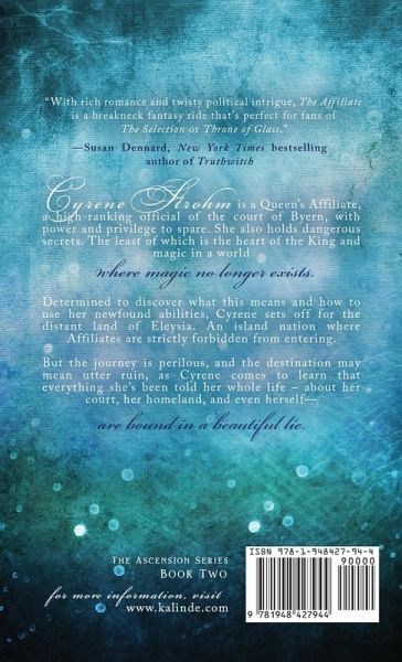 Cyrene Strohm is a Queen's Affiliate, a high-ranking official of the court of Byern, with power and privilege to spare. But she's also a keeper of dangerous secrets: like the fact that she holds the heart of the King, and that she possesses magic in a world where magic no longer exists. Determined to discover what this means and how to use her newfound abilities, Cyrene sets off for the distant land of Eleysia. An island nation where Affiliates are strictly forbidden from entering. But the journey is perilous, and the destination may mean utter ruin, as Cyrene comes to learn that everything she's been told her whole life - about her court, her homeland, and even herself--are bound in a beautiful lie.
