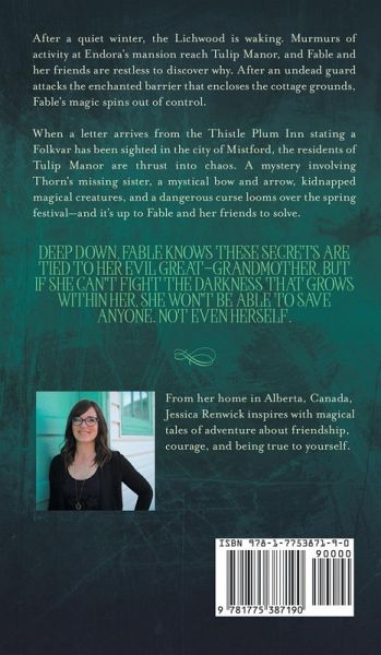 From the award-winning author, Jessica Renwick, comes the third installment of the Starfell series! Filled with friendship, magic, and adventure—readers will be thrilled with this follow up to The Book of Chaos and The Guitar of Mayhem! After a quiet winter, the Lichwood is waking. Soft murmurs of activity at Endora’s mansion reach Tulip Manor, and Fable and her friends are restless to discover why. After an undead guard attacks the enchanted barrier that encloses the cottage grounds, Fable’s magic spins out of control. When a letter arrives from the Thistle Plum Inn stating a Folkvar has been sighted in the city of Mistford, the residents of Tulip Manor find themselves thrust into chaos. A mystery involving Thorn’s missing sister, a mystical bow and arrow, kidnapped magical creatures, and a dangerous curse looms over the spring festival—and it’s up to Fable and her friends to solve. Deep down, Fable knows these secrets are tied to her evil great-grandmother. But if she can’t fight the darkness that grows within her, she won’t be able to save anyone. Not even herself.