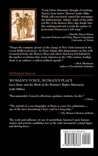 In the decades before the Civil War, the miserable living conditions of New York City's lower east side nurtured the gangs of New York. This book tells the story of the Bowery Boys, one gang that emerged as part urban legend and part street fighters for the city's legions of young workers. Poverty and despair led to a gang culture that was easily politicized, especially under the leadership of Mike Walsh who led a distinct faction of the Bowery Boys that engaged in the violent, almost anarchic, politics of the city during the 1840s and 1850s. Amid the toppled ballot boxes and battles for supremacy on the streets, many New Yorkers feared Walsh's gang was at the frontline of a European-style revolution. A radical and immensely popular voice in antebellum New York, Walsh spoke in the unvarnished language of class conflict. Admired by Walt Whitman and feared by Tammany Hall, Walsh was an original, wildly unstable character who directed his aptly named Spartan Band against the economic and political elite of New York City and New England. As a labor organizer, state legislator, and even U.S. Congressman, the leader of the Bowery Boys fought for shorter working hours, the right to strike, free land for settlers on the American frontier, against child labor, and to restore dignity to the city's growing number of industrial workers.