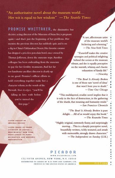 Promise Whittaker, the diminutive but decisive acting director of the Museum of Asian Art, is pregnant again--and that's just the beginning of her problems. Her mentor, the previous director, has suddenly quit, and is on a dig in China's Taklamakan Desert. Her favorite curator has dropped a priceless porcelain bowl, once owned by Thomas Jefferson, down the museum's steps. Another colleague has been embezzling from the museum to pay for her fertility treatments. And her far too handsome ancillary director is clearly up to no good. Promise's offbeat efforts to hold everything together make her a character who, in the words of the Newark Star-Ledger, "you'll be falling in love with before you've turned the first page."